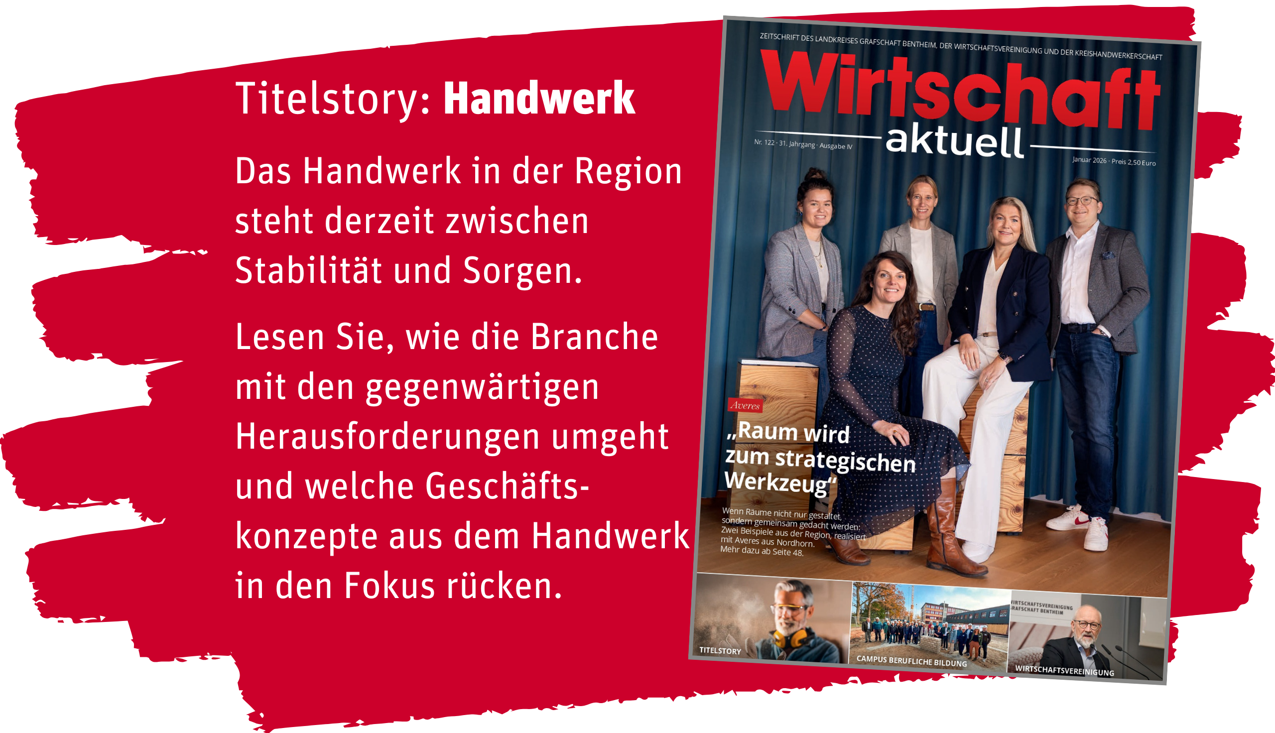 Aktuell sind mehr als 200 Unternehmen aus verschiedenen Branchen aus der Region Grafschaft Bentheim Mitglied in der Wirtschaftsvereinigung.